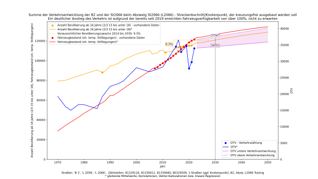 Wenn Straßenausbauprojekte auf Basis ca. 10 Jahre alter Gutachten, einer parallel verlaufenden Schienenverbindung und unweit einer Autobahn nicht in Frage gestellt werden, entsteht die Annahme, dass von Seiten der „öffentlichen Hand“ kein Interesse besteht, den Flächenverbrauch zu verringern oder ausreichende Klimaschutzmaßnahmen zu ergreifen.