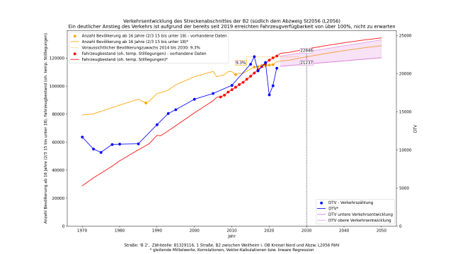 Man erkennt, dass der Fahrzeugbestand bereits größer ist, als die Bevölkerung ab 16 Jahren (2/3 der 15- bis unter 18-jährigen).